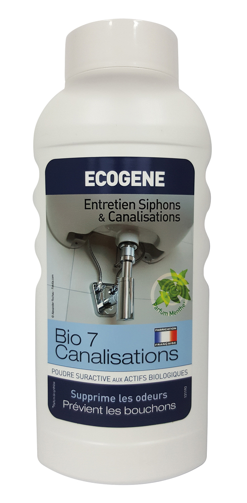 BIO7 CANALISATIONS 500G La solution biologique aux problèmes de colmatages, mauvaises odeurs et de tartre dans les siphons et canalisations (éviers, lavabos, douches).