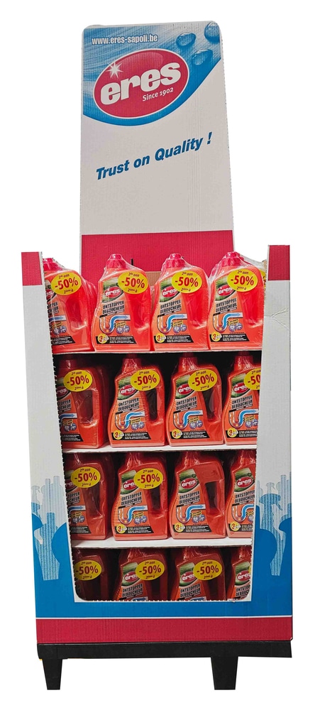 BOX DUO DEBOUCH CANAL2ème -50% X48 Box palette de 48 packs de 2 flacons avec une offre avantageuse à -50 % sur le deuxième flacon. | Ce déboucheur liquide concentré est conditionné pour un usage efficace dans les canalisations, siphons, toilettes et sanibroyeurs. | Grâce à sa teneur élevée en hydroxyde de sodium (29 %), il dissout rapidement graisses, cheveux, résidus alimentaires et papiers. | Son action en profondeur permet de désengorger les conduits en seulement 30 minutes, avec une efficacité renforcée en cas dobstruction sévère. | Il contient un protecteur de métaux qui aide à préserver les installations même en cas dutilisation régulière. | Un agent anti-odeur neutralise les mauvaises émanations et contribue à maintenir une hygiène durable. | Sans danger pour les fosses septiques et compatible avec les tuyauteries en plastique ou métal, il constitue une solution polyvalente adaptée à un usage domestique comme professionnel.