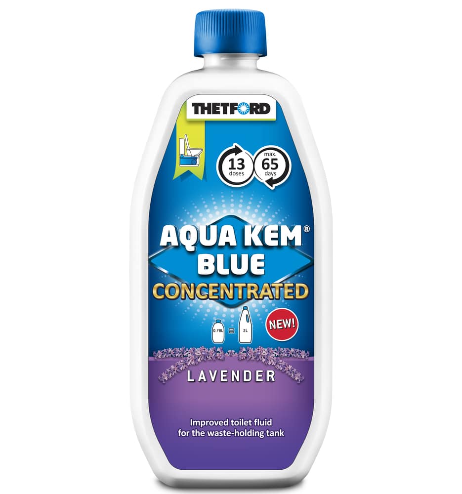 AQUA KEM BLUE LAVANDE CONCENTR780ML Additif sanitaire surpuissant, pour liquéfier les matières des toilettes portables. | Formule concentrée 780ml = 2L = 13 doses | Parfum Lavande.