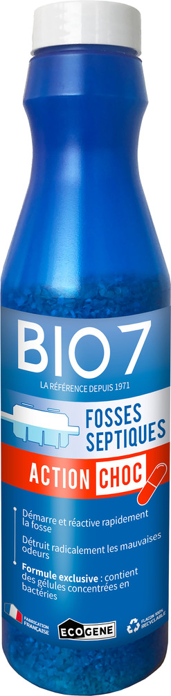 BIO7 CHOC ACTIV BACTERIEN 375G Idéal pour le démarrage des fosses septiques neuves et la réactivation après vidange. | Efficace pour redémarrer les fosses après une période d’inoccupation, comme après les vacances ou pour une résidence secondaire. | Combine des micro-organismes sélectionnés et des vitamines pour stimuler leur croissance rapide et durable. | Action Choc Fosses Septiques Ecogen favorise l’installation d’une flore bactérienne vivace et efficace, essentielle au bon fonctionnement des fosses. | Fournit des nutriments qui renforcent l’activité des bactéries, levures et enzymes, facilitant la dégradation des déchets domestiques. | Élimine les mauvaises odeurs grâce à ses agents biologiques non polluants. | Respecte l’environnement en préservant les cycles naturels et en utilisant des composants écologiques.