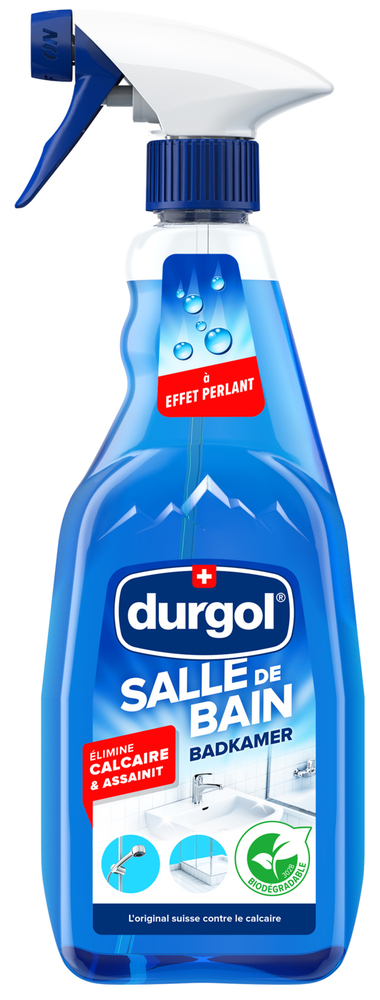 DURGOL SURFACE ORIGINAL 500ML Ce nettoyant et detartrant bain mousse surface en vaporisateur est efficace contre le calcaire et la saleté grâce à des agents tensio-actifs, il est économique, permet de maintenir une propreté et une hygiène irréprochables. | Outre le calcaire, d’autres dépôts tels que les résidus de savon s’accumulent dans la salle de bain. Ceux-ci se déposent notamment dans les robinets, les lavabos, les lave-mains, les baignoires ou encore les cabines de douche, devenant un terrain favorable à la prolifération des bactéries. | Polyvalent, idéal dans toute la salle de bain et laisse un parfum frais. | Facilement biodégradable.