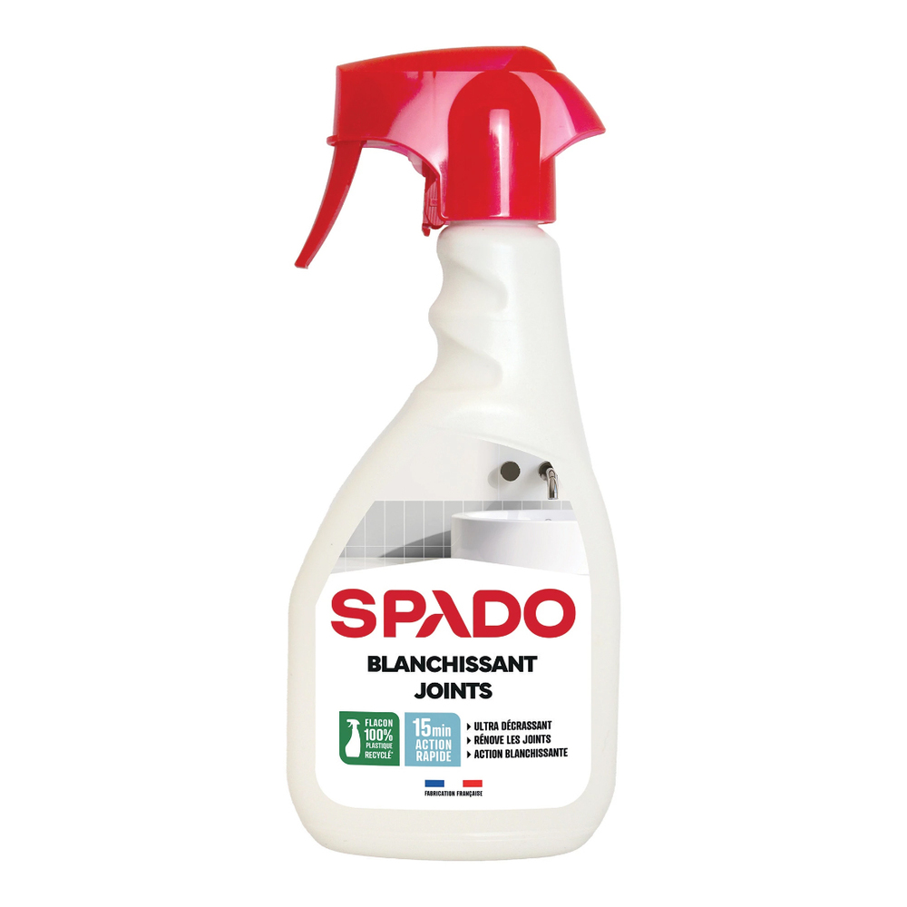 SPADO BLANCHISSEUR DE JOINTS 500ML Le nettoyant sanitaire anti-moisissures de la marque Spado est conçu pour éliminer les moisissures tout en désinfectant et nettoyant en profondeur votre salle de bain. | Il nettoie et blanchit les joints dans les sanitaires, la salle de bain, la cuisine ou toute autre pièce humide, tout en supprimant et en prévenant l’apparition des moisissures et des traces noires. | | Ce produit Spado élimine efficacement les salissures, les taches de savon et les dépôts de tartre, tout en offrant une action blanchissante sur les joints. | Ce nettoyant peut être utilisé sur diverses surfaces, telles que le caoutchouc, le plastique, la résine de synthèse et les rideaux de douche.