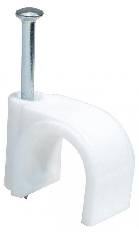 ATTACHE ROND 8MM BLANC 50PC Pontets à clouer en plastique pour câble rond 8mm.