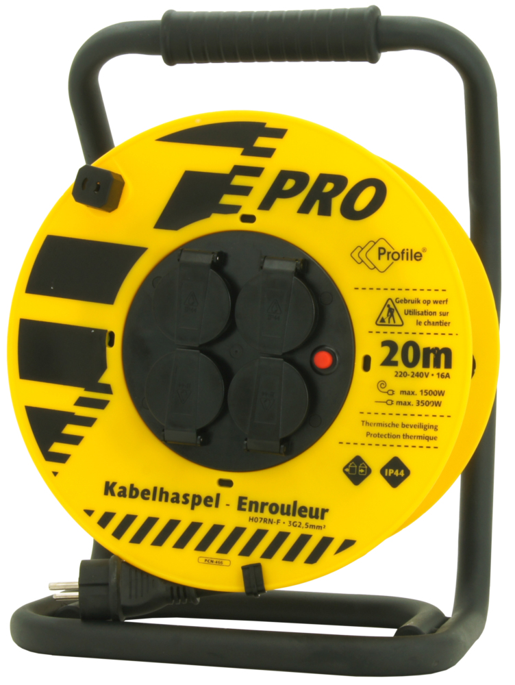 ENROULEUR ELECTRIQ 3G2.5 PRO20M -Usage de l’enrouleur électrique : Extérieur | -Section fils-câbles : 2,5mm² | -Longueur : 20m | -Nombre de prises : 4