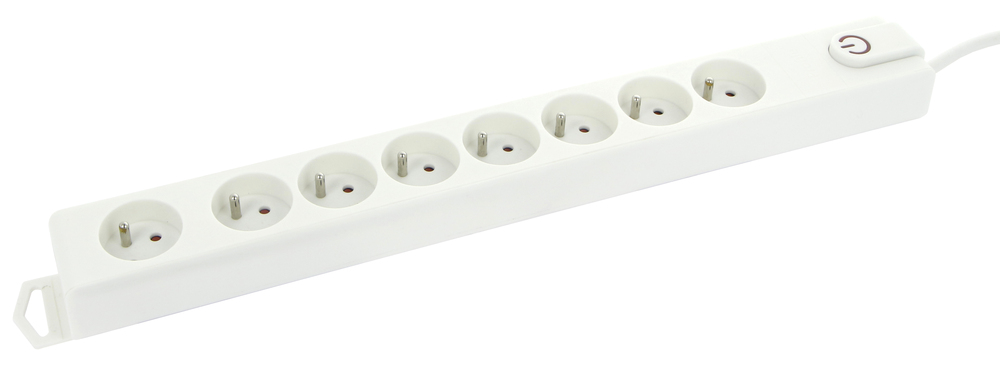 MULTIPRISE X8 BLANC +1.5M + INT 8 prises | Tension 230V | 2 phases + terre | Longueur de cordon: 1,5m | Usage Intérieur IP20