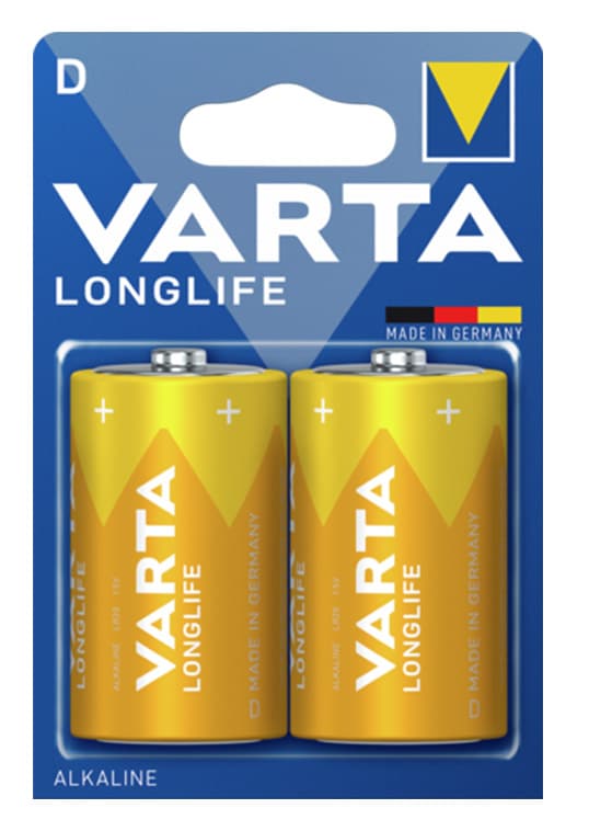 VARTA LONGLIFE LR20 X2 Alimente les appareils à usage prolongé et consommation modérée, ces piles assurent une énergie continue et fiable au quotidien. | Parfaites pour les horloges murales, les jouets à moteur lent ou les appareils audio, elles permettent une autonomie étendue tout en maintenant une tension stable. | La fabrication allemande garantit un haut niveau de qualité, de sécurité et de constance dans les performances. | Une solution économique et puissante pour les besoins énergétiques de longue durée.
