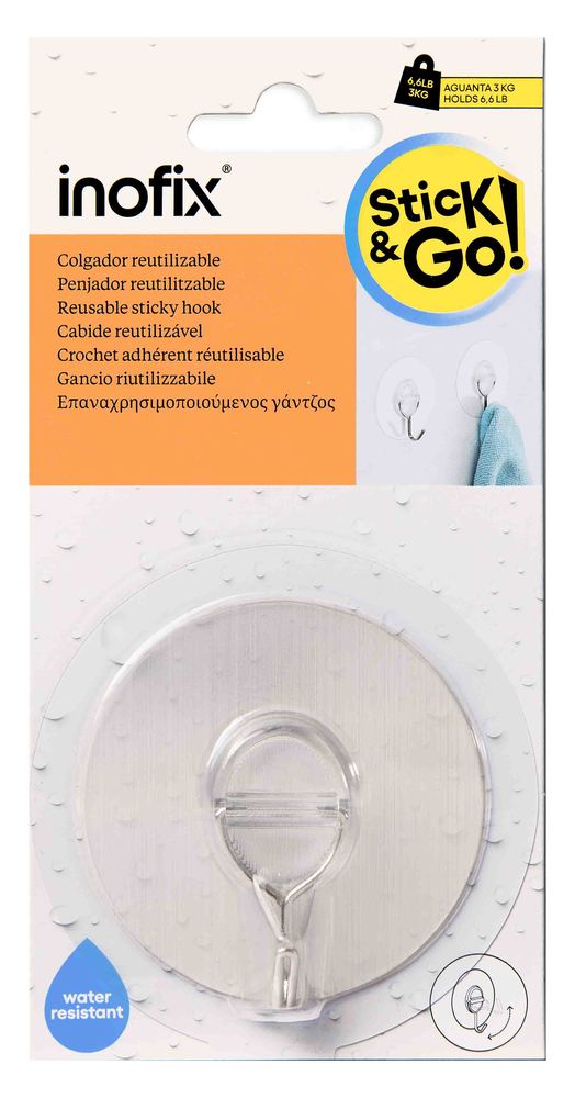 CROCHET ADHESIF REUTILISABLE ACIER Crochet auto-adhérent et réutilisable grâce aux micro ventouses. | Résistant à l’eau, résiste aux environnements humides et aux températures élevées. | Très facile à installer. | Ø65x20mm