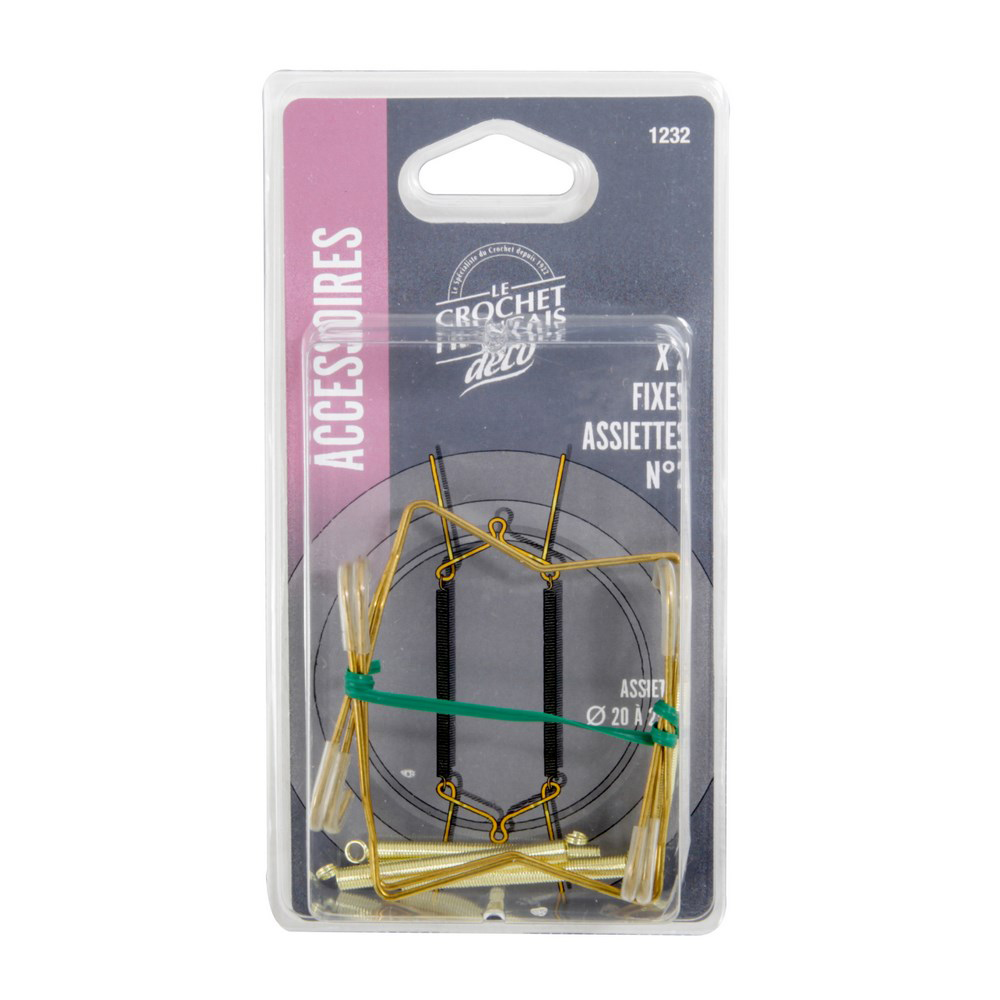 FIXE ASSIET MURAUX ALU X2 Permet d’accrocher aisément au mur vos assiettes de 20 à 25 cm de diamètre. | Embouts de protection sur les 4 accroches. | Evite les rayures