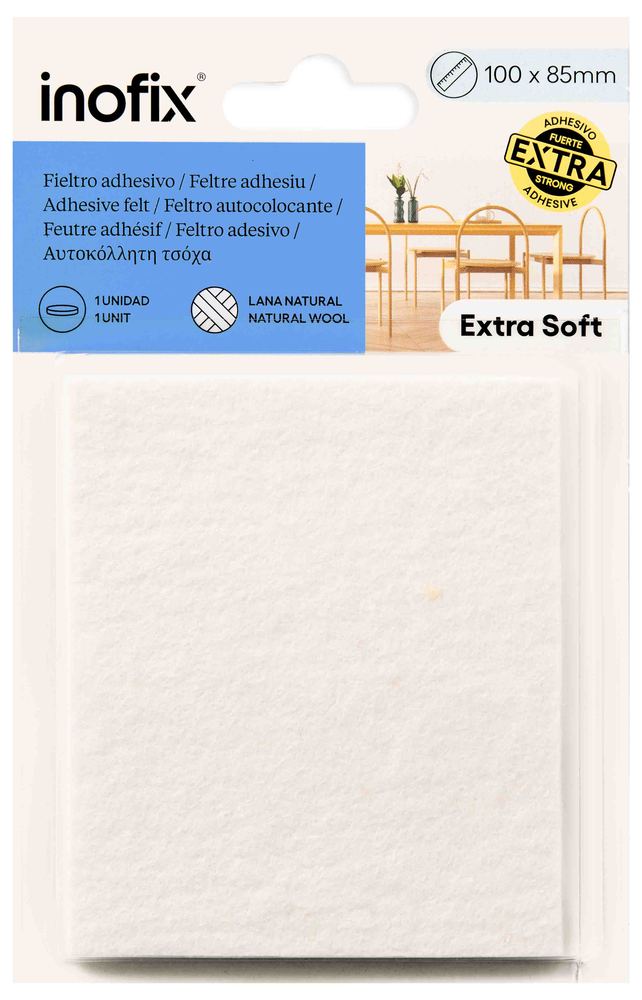PATIN FEUTRE LAINEADHESIF 100X85MM Pour protéger les surfaces. | Fixation adhésive. | Épaisseur 3mm.