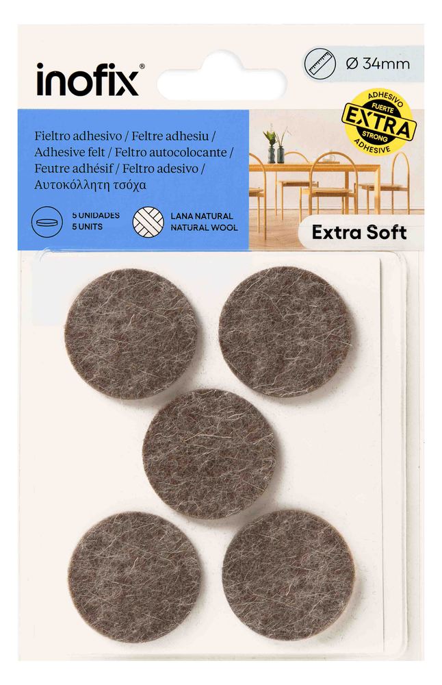 PATIN FEUTRE LAINEX5 ADH DIAM34MM Pour protéger les surfaces. | Fixation adhésive. | Épaisseur 3mm.