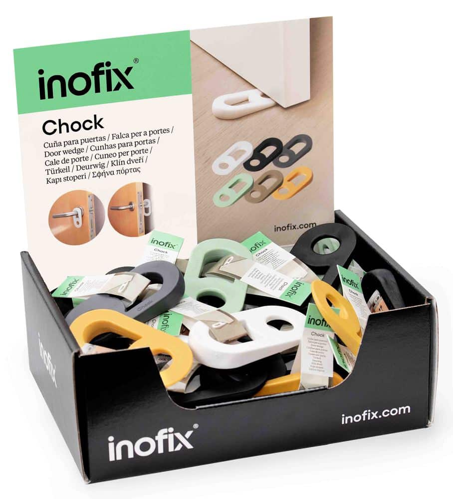 PRESENTOIR CALE PORTE DE 42 UNITES Bloque les portes efficacement et évite les fermetures involontaires. | Composé de 42 unités réparties en 6 coloris (blanc, noir, gris, vert, marron, jaune) pour s’adapter à tous les styles d’intérieur. | Chaque cale-porte est conçu en matériau souple et résistant, garantissant une adhérence optimale sur tous types de sols. | Doté d’un trou de suspension intégré, facilitant le rangement sur une poignée de porte ou un crochet mural. | Facilite l’aération des pièces tout en garantissant une protection contre les courants d’air.