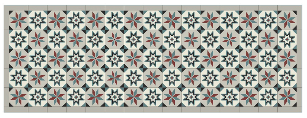 Tapis Velvet Carreaux de Ciment Gris Rouge