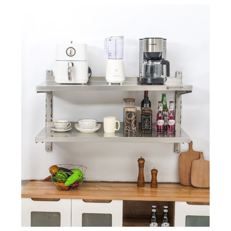 Etagère Murale en Inox sur Crémaillères 2 Niveaux – L 1000 x P 400 mm