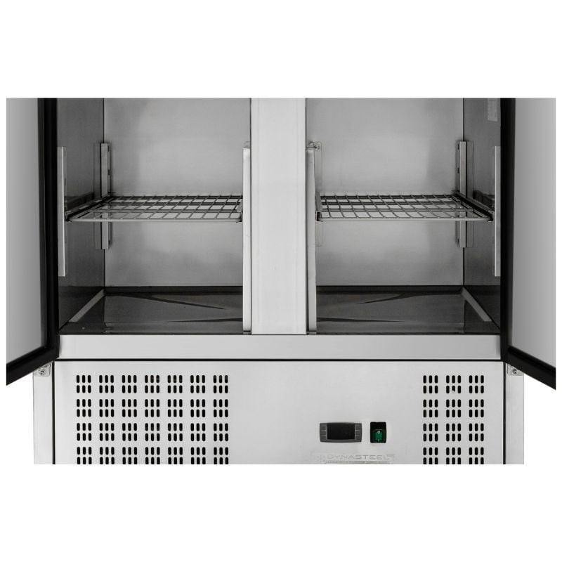 Saladette Compacte 2 Portes – Avec Couvercle coulissant, un équipement incontournable pour les professionnels de la cuisine. Découvrez notre Saladette Compacte 2 Portes de la marque Dynasteel, conçue pour répondre à tous vos besoins. Avec sa fonctionnalité de couvercle coulissant, vous pourrez aisément accéder aux aliments tout en les conservant dans les meilleures conditions. Les avantages de notre Saladette Compacte 2 Portes : Gain de place : Son format compact permet d’optimiser l’espace dans votre cuisine professionnelle. Facilité d’utilisation : Son couvercle coulissant facilite l’accès aux aliments et leur conservation. Température ajustable : Vous pouvez régler la température de 0°C à 10°C pour une conservation optimale de vos produits. Construction solide : Fabriquée en inox, cette saladette est résistante et durable. Grande capacité de stockage : Avec un volume de 159 L, vous pourrez stocker facilement vos ingrédients et préparations. Optez pour notre Saladette Compacte 2 Portes et bénéficiez d’un équipement fiable, pratique et de qualité. Les professionnels de la restauration ne pourront plus s’en passer. Faites de votre cuisine un espace productif et bien organisé avec notre Saladette Compacte 2 Portes. Livrée sans bac. Livrée avec 2 grilles, 2 paires de glissières et 2 clefs.