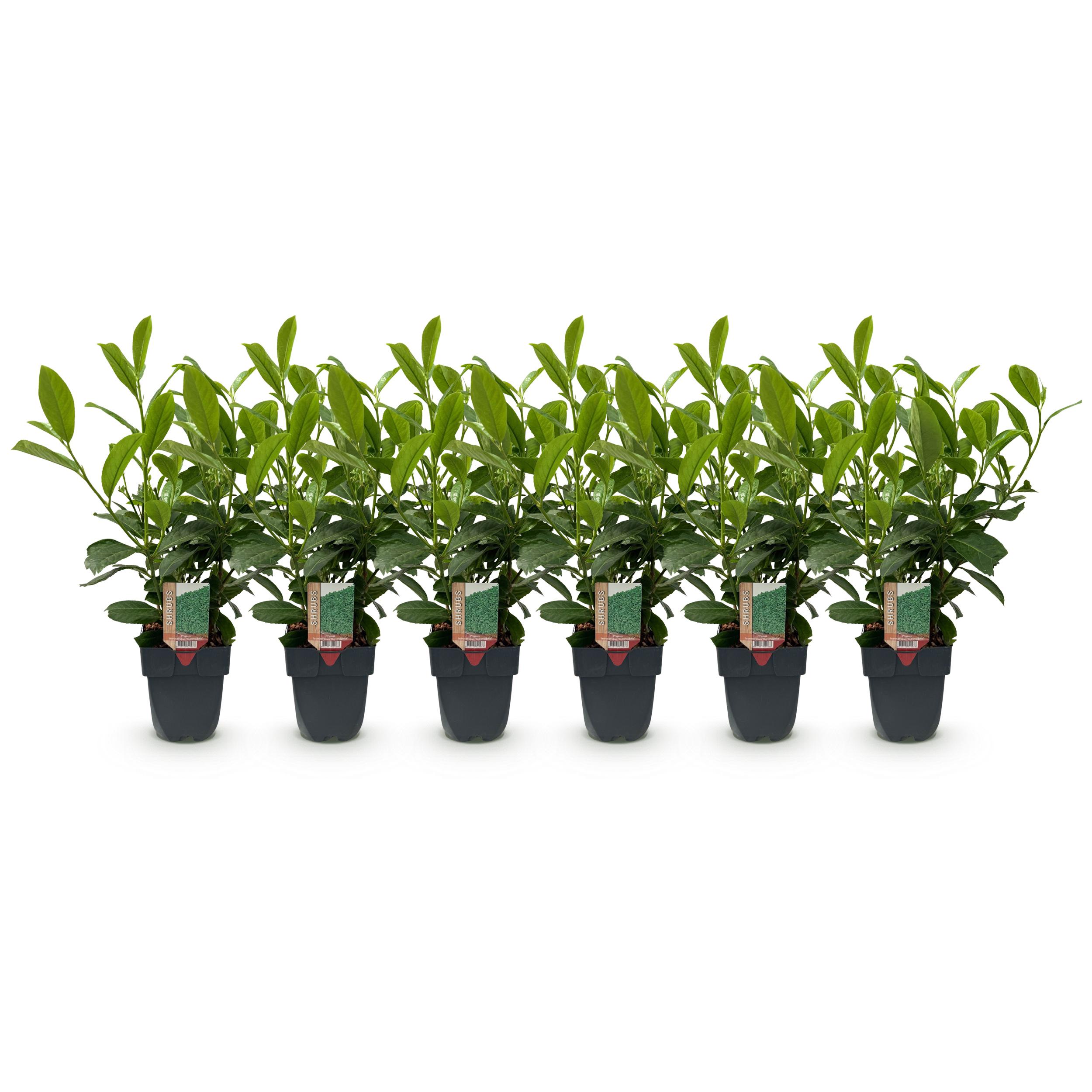 Green boutiQ – Haagplanten – Prunus laurocerasus Rotundifolia – blad groen – 6 planten – 1 strekkende meter – groenblijvend – pot 17cm hoogte 50cm
