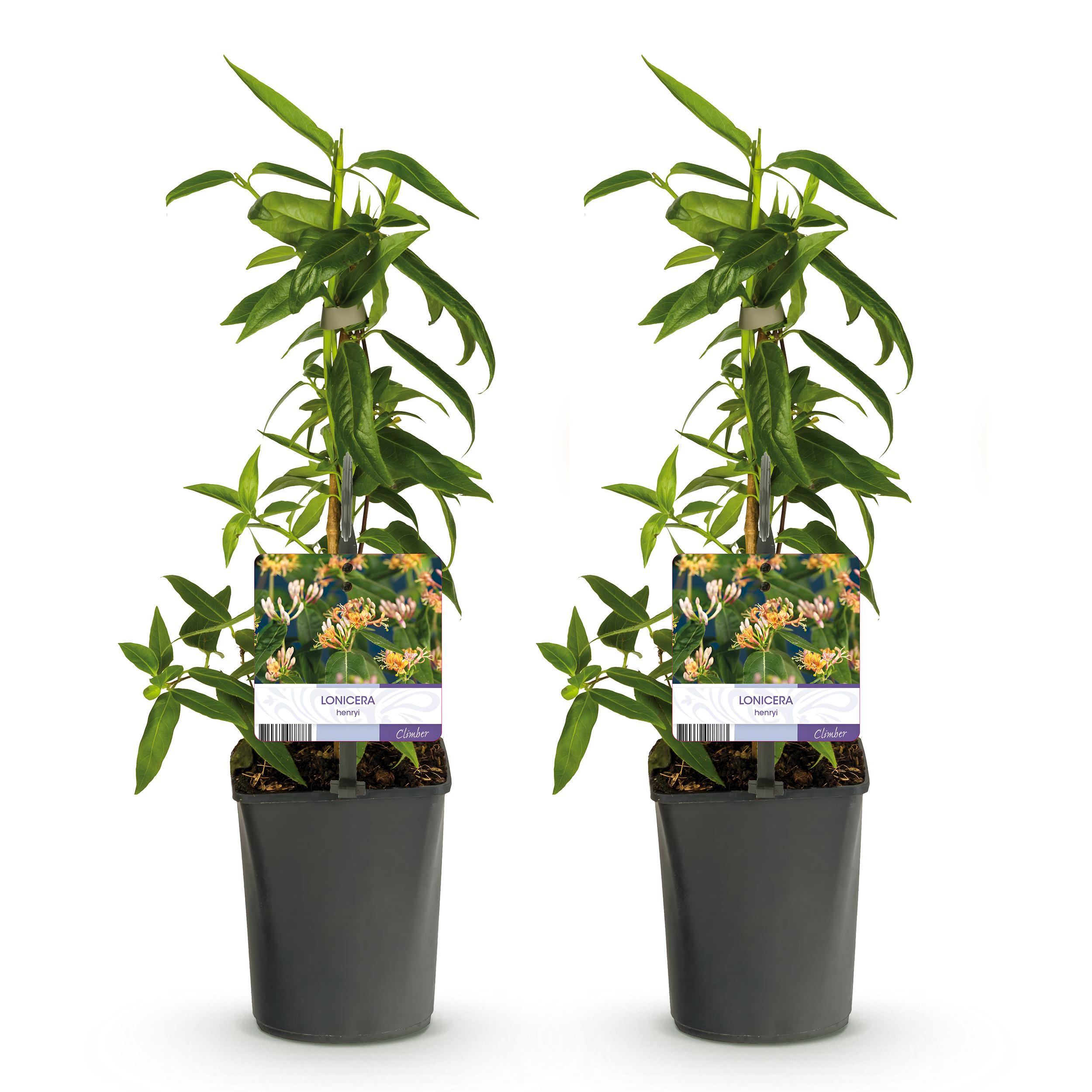 - Produit : Green boutiq – kamperfoelie – lonicera henryi – bloem roze – weinig onderhoud – 2 planten – pot 11cm hoogte 40cm