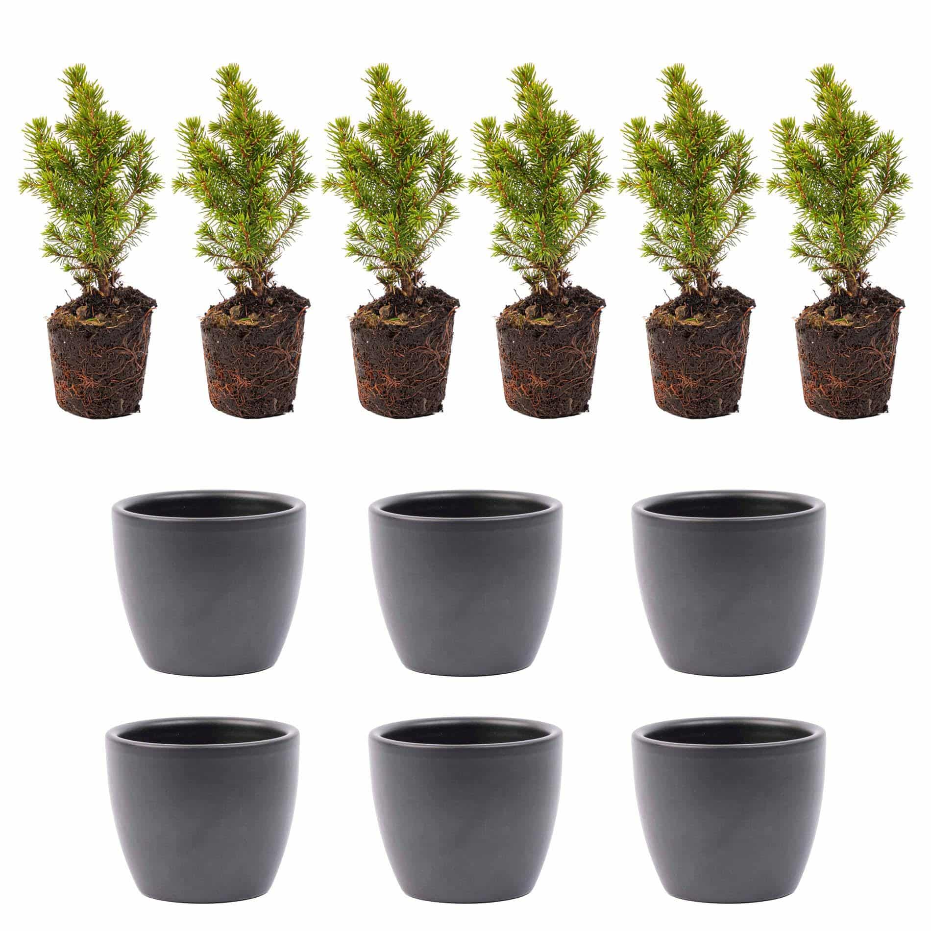 Mini sapin de Noël, lot de 6 – avec pot Boule Anthracite