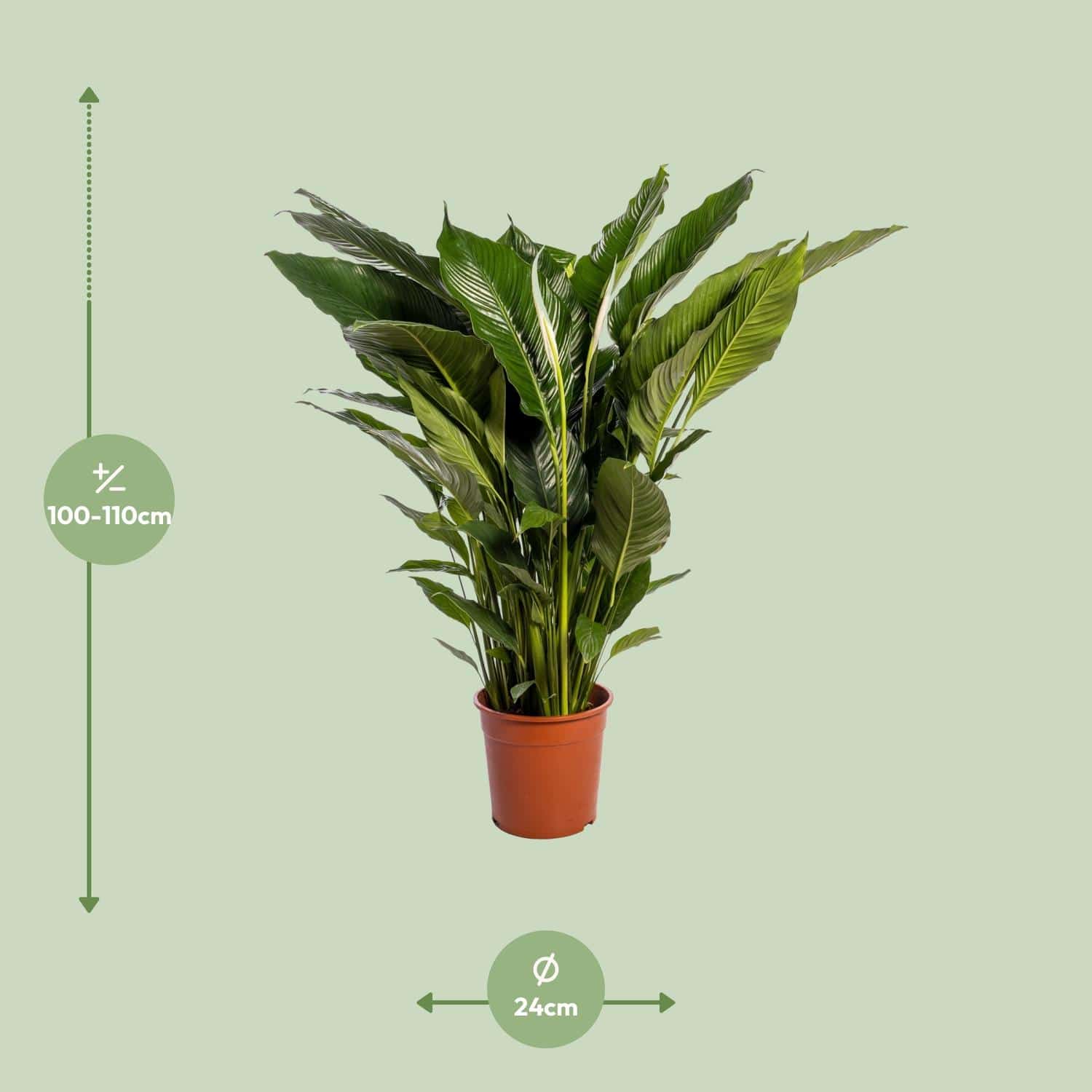 Le Spathiphyllum ‘Sweet Sebastiano’ Blanco, aussi appelé Spathiphyllum, est une magnifique plante d’intérieur qui apporte élégance et sérénité à tout espace. Originaire des régions tropicales, cette plante s’épanouit dans des conditions de faible luminosité, ce qui la rend parfaite pour les bureaux ou les maisons. Avec ses feuilles vert foncé brillantes et ses fleurs d’un blanc éclatant, le Spathiphyllum ‘Sweet Sebastiano’ Blanco apporte une touche de beauté naturelle à votre intérieur. Facile d’entretien, il purifie l’air et crée un environnement plus sain. Apportez sérénité et style à votre espace avec ce Spathiphyllum optimisé pour le référencement. Pour entretenir le Spathiphyllum, choisissez un emplacement semi-ombragé, car la lumière directe du soleil peut endommager les feuilles. Arrosez-le une fois par semaine pour maintenir le sol humide, mais pas détrempé. Les Spathiphyllums préfèrent un sol bien drainé ; utilisez donc un mélange de tourbe, de perlite et de terreau. Fertilisez la plante tous les 2 à 3 mois avec un engrais liquide équilibré dilué de moitié. Évitez de trop fertiliser, car cela pourrait endommager la plante. Le Spathiphyllum ‘Sweet Sebastiano’ Blanco, aussi appelé Spathiphyllum de la paix, est un choix populaire pour la décoration intérieure grâce à ses élégantes fleurs blanches et à son feuillage vert luxuriant. Cette plante enchanteresse a un atout dans son sac : il est scientifiquement prouvé qu’elle purifie l’air en absorbant les toxines nocives en suspension dans l’air ! Cependant, il est important de noter que si le Spathiphyllum de la paix est idéal pour embellir votre maison ou votre bureau, sa consommation est déconseillée. Alors, n’oubliez pas d’admirer sa beauté et ses bienfaits purificateurs d’air, mais laissez-le hors de votre cuisine ! – Le Spathiphyllum ‘Sweet Sebastiano’ Blanco est une plante populaire connue pour ses magnifiques fleurs blanches. – Avec un pot de 24 cm, cette plante est parfaite pour ajouter une touche d’élégance à tout espace intérieur. – Avec ses environ 110 cm de haut, le Spathiphyllum ‘Sweet Sebastiano’ Blanco impressionne par sa hauteur impressionnante. – Aussi appelé Spathiphyllum de la paix, cette plante est appréciée pour sa capacité à purifier l’air et à créer une atmosphère apaisante. Le Spathiphyllum ‘Sweet Sebastiano’ Blanco s’épanouit à mi-ombre, ce qui en fait un choix idéal pour les espaces intérieurs peu ensoleillés. – Anecdote : Outre ses magnifiques fleurs, les feuilles du Spathiphyllum ‘Sweet Sebastiano’ Blanco peuvent donner un indice visuel sur sa santé. Si les feuilles commencent à s’affaisser, cela signifie que la plante a besoin d’eau, mais si elles jaunissent, cela peut être le signe d’un arrosage excessif.