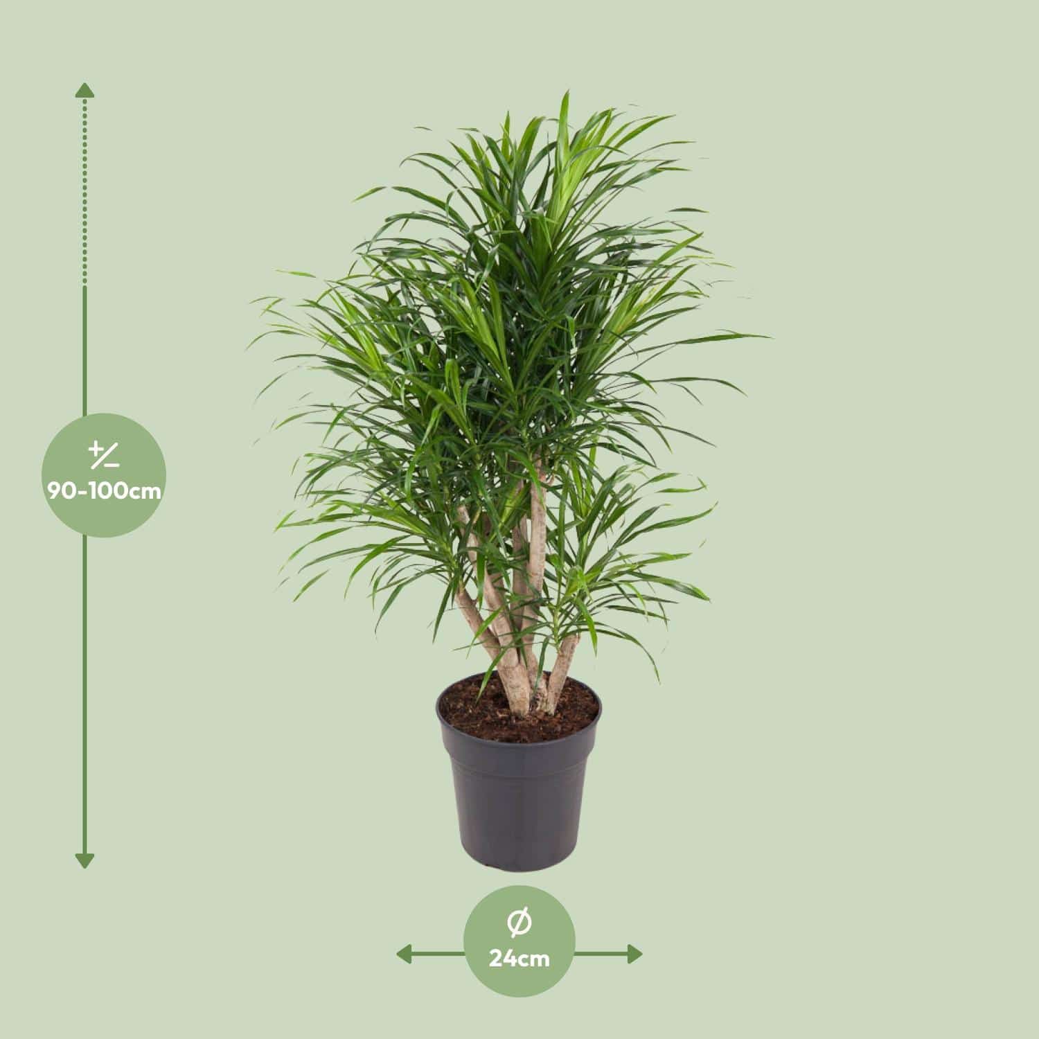 À la recherche d’une belle plante d’intérieur ? Ne cherchez plus : le Dracaena Anita, aussi appelé Dragonnier, est fait pour vous. Originaire des régions tropicales, cette plante apporte une touche d’élégance à n’importe quel espace. Avec ses feuilles lancéolées d’un vert éclatant et sa tige fine et dressée, le Dracaena Anita est non seulement esthétique, mais aussi facile d’entretien. Que vous soyez un amateur de plantes expérimenté ou que vous débutiez votre jardin d’intérieur, cette plante facile d’entretien est indispensable pour ajouter une touche de beauté naturelle à votre maison ou votre bureau. Le Dracaena est une plante facile d’entretien qui prospère à mi-ombre. Il suffit d’un arrosage hebdomadaire, en laissant la terre sécher entre chaque arrosage pour éviter les excès d’eau. Le sol idéal pour un Dragonnier est un sol fertile et bien drainé, contenant de la tourbe ou du compost. Une fertilisation est recommandée pendant la saison de croissance (printemps et été) avec un engrais liquide équilibré toutes les 2 à 4 semaines. Attention toutefois à ne pas trop fertiliser, car cela peut brûler les racines et endommager le feuillage. Saviez-vous que le Dracaena Anita, une plante d’intérieur populaire, est non seulement une belle plante ornementale, mais aussi un purificateur d’air naturel ? Ses feuilles d’un vert éclatant peuvent contribuer à améliorer la qualité de l’air en éliminant les toxines comme le formaldéhyde et le benzène. Il est important de noter, cependant, que si le Dracaena Anita peut paraître tentant, surtout avec son nom rappelant celui d’un dragon, il est déconseillé de le consommer. Alors gardons cette charmante plante comme un délice visuel dans nos maisons et admirons sa beauté, mais n’oubliez pas de ne pas la croquer !- Dracaena Anita est une plante d’intérieur populaire avec un pot de 24 cm.- Cette plante peut atteindre une hauteur d’environ 100 cm, ce qui en fait un excellent choix pour ajouter de la verdure à n’importe quel espace.- Dracaena Anita est également connu sous le nom de Dragon Tree, ce qui ajoute une touche de mystique et d’intrigue à son identité.- Cette plante prospère dans un endroit partiellement ombragé, ce qui lui permet de s’adapter à une variété de conditions de lumière et la rend adaptée à une variété de pièces d’une maison ou d’un bureau.- Fait amusant : Dracaena Anita n’est pas seulement une belle plante, mais elle possède également des propriétés purificatrices d’air qui aident à améliorer la qualité de l’air là où elle est placée.