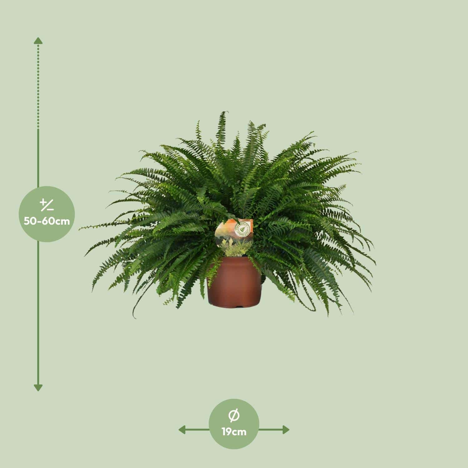 La fougère de Boston est une plante d’intérieur populaire, réputée pour ses frondes gracieuses et arquées et ses propriétés purificatrices d’air. Connue scientifiquement sous le nom de Nephrolepis exaltata, cette fougère est originaire des régions au climat chaud et humide, comme les forêts tropicales d’Amérique du Sud, d’Afrique et d’Asie du Sud-Est. Son habitat naturel est constitué de zones ombragées et très humides, ce qui la rend idéale pour la culture en intérieur. En culture intérieure, la fougère de Boston prospère dans une lumière vive et indirecte, et peut également tolérer des conditions de luminosité plus faibles. Elle préfère un sol bien drainé et un arrosage régulier pour maintenir le sol constamment humide, mais pas détrempé. Purificateur d’air, la fougère de Boston contribue à éliminer les toxines nocives de l’environnement intérieur, ce qui en fait un excellent choix pour améliorer la qualité de l’air des maisons ou des bureaux. Avec ses frondes vertes et luxuriantes, la fougère de Boston ajoute une touche d’élégance et de beauté naturelle à tout intérieur. La Nephrolepis, communément appelée fougère de Boston, prospère à mi-ombre ou à l’ombre complète et nécessite un arrosage hebdomadaire. Elle préfère être plantée dans un sol bien drainé et riche en matière organique. Concernant la fertilisation, il est recommandé de fertiliser la plante avec un engrais liquide équilibré une fois par mois au printemps et en été. Attention toutefois à ne pas trop fertiliser, car cela pourrait provoquer des brûlures aux extrémités des feuilles. La fougère de Boston est une plante d’intérieur populaire grâce à ses élégantes frondes plumeuses qui apportent une touche de verdure à n’importe quelle pièce. Elle s’épanouit dans les environnements humides, ce qui la rend idéale pour les salles de bains ou les cuisines. Ses propriétés purificatrices d’air en font un excellent choix pour améliorer la qualité de l’air intérieur. Avec un entretien approprié, la fougère de Boston peut apporter une ambiance vibrante et naturelle à n’importe quel intérieur. La fougère de Boston est livrée dans un pot de 19 cm, ce qui la rend idéale pour tous les espaces intérieurs. – D’une hauteur estimée à 60 cm, cette fougère de Boston apporte une touche d’élégance à n’importe quelle pièce. – Cette plante s’épanouit dans les zones semi-ombragées, ce qui la rend parfaite pour ceux qui recherchent une ambiance apaisante. – L’entretien de la fougère de Boston est un jeu d’enfant, car elle nécessite peu d’entretien et d’attention. – Avec ses frondes luxuriantes et plumeuses, la fougère de Boston ajoute une touche vibrante et naturelle à tout espace de vie.