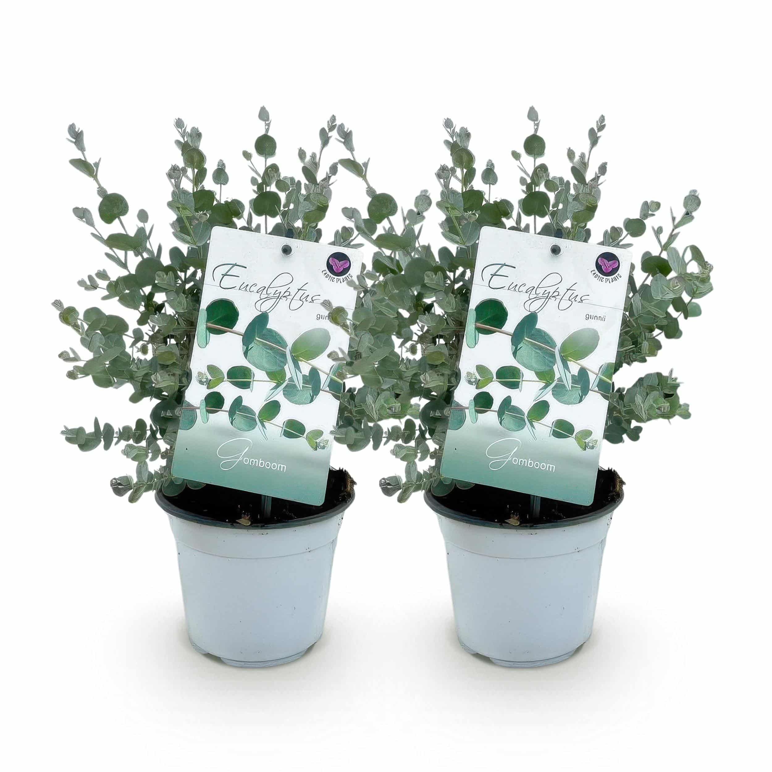 Green boutiQ – Plante de patio – Arbre d’eucalyptus – Eucalyptus gunni – Gris – 2 plantes – Résistant à l’hiver – Pot 14cm Hauteur 30cm