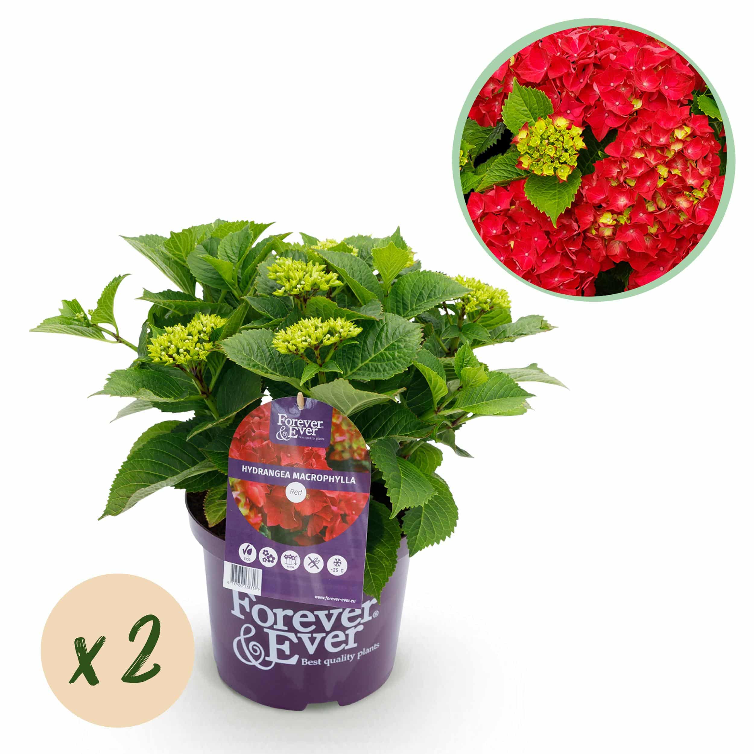 L’Hydrangea macrophylla Forever & Ever Red est un magnifique hortensia de jardin qui offre une véritable sensation de couleur avec ses fleurs d’un rouge éclatant. Cette plante à fleurs est idéale pour les bordures et les pots, ce qui la rend parfaite pour votre terrasse ou votre balcon. Avec sa floraison abondante et ses couleurs éclatantes, cet hortensia ajoute une touche d’élégance à tout espace extérieur. La série Forever & Ever est réputée pour sa floraison longue durée, vous permettant de profiter longtemps de l’éclat de ces fleurs. Caractéristiques principales :