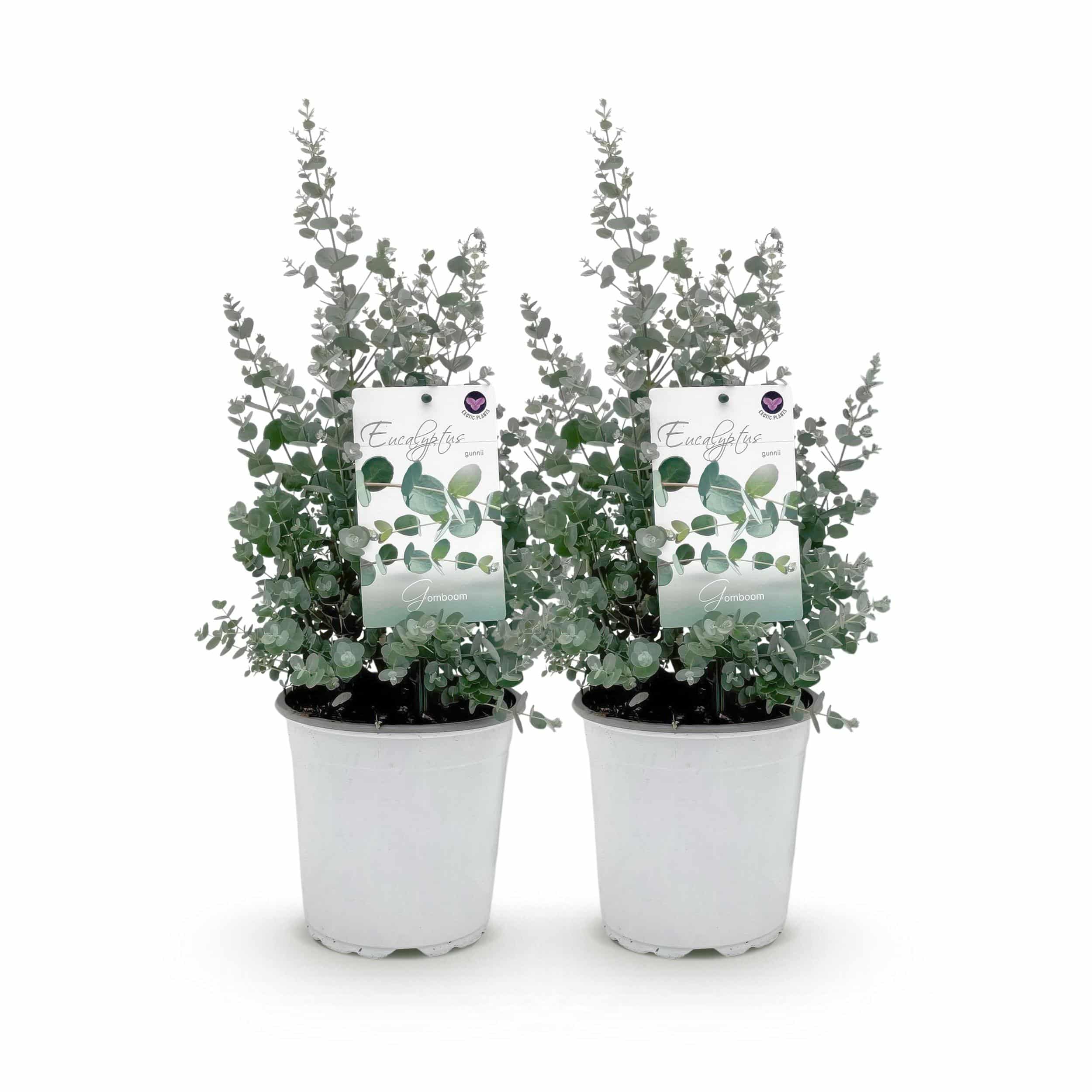 Green boutiQ – Plante de terrasse – Arbre d’eucalyptus – Eucalyptus gunni – Gris – 2 plantes – Résistant à l’hiver – Pot 17cm Hauteur 40cm