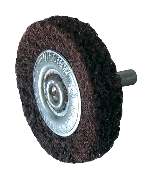 ROUE FINITION D75 EP15 / TIGE DE 6X28 GR60 NYLON Ponçage de finition sur surface étroite. Toile non tissée. 4 500 tr/min maximum.
