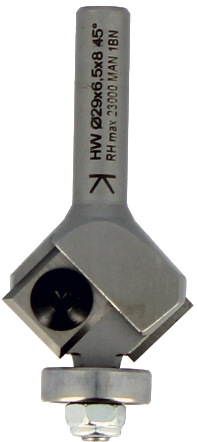 MECHE AFFLEUR. 2 PLAQUETTES 30° D26 Q6/RLT HM Affleurage à 30° ou 45° suivant un gabarit. Rechange : roulement (Ø 19) 890.002.04 – roulement (Ø 16) 890.002.03 – plaquettes (L 12) 0012.1215.00 – plaquettes (L 30) 0030.1215.00.