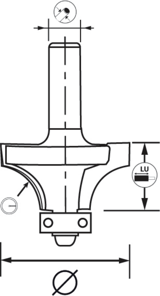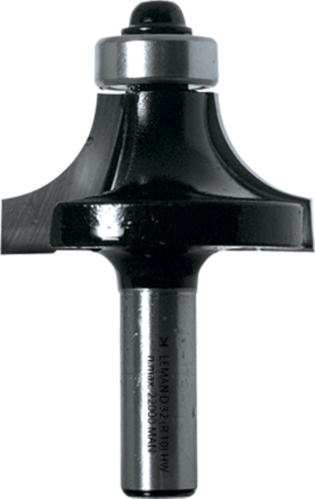 MECHE 1/4 DE ROND HM 1 PLAT D22 R= 5 Q8 / RLT Défonçage en quart de rond avec ou sans plats sur le dessus, dans le bois en suivant un gabarit. Rechange : roulement (Ø 12,7) 890.002.08 – roulement (Ø 9,5) 890.002.06.