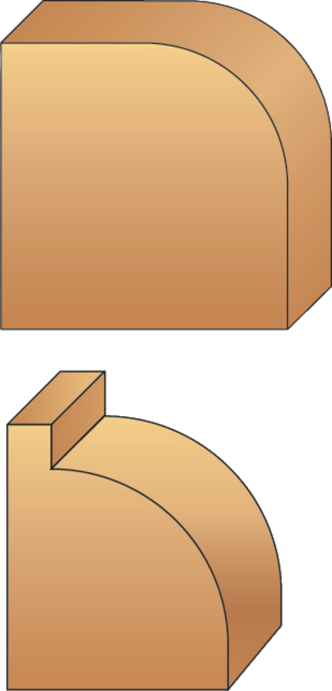 MECHE 1/4 DE ROND HM 1 PLAT D38 R12 Q6/RLT Défonçage en quart de rond avec ou sans plats sur le dessus, dans le bois en suivant un gabarit. Rechange : roulement (Ø 12,7) 890.002.08 – roulement (Ø 9,5) 890.002.06.