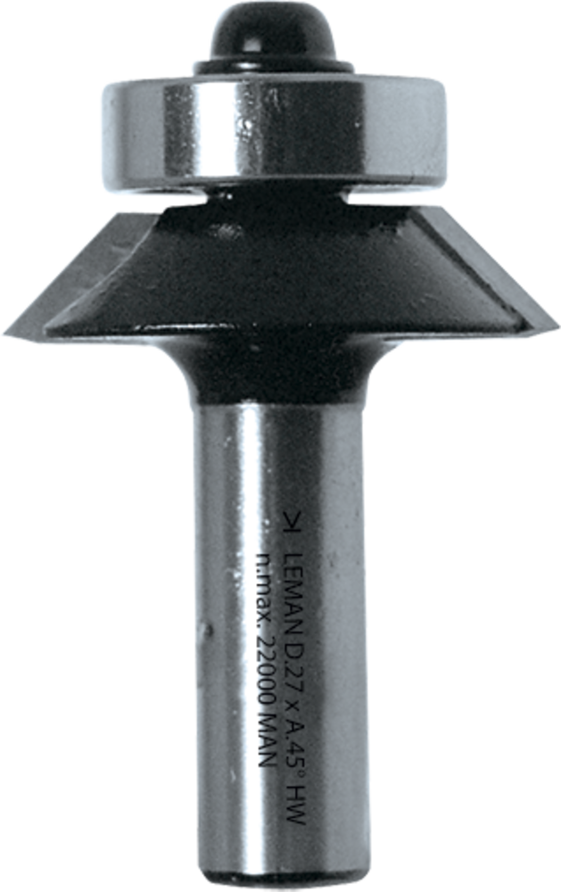 MECHE AFFLEUREUSE A CHANF 30° D26 LU8,5 Q8 / RLT HM Chanfreinage des chants dans les bois durs, les panneaux mélaminés et stratifiés, en suivant un gabarit. Rechange : roulement 890.002.03.