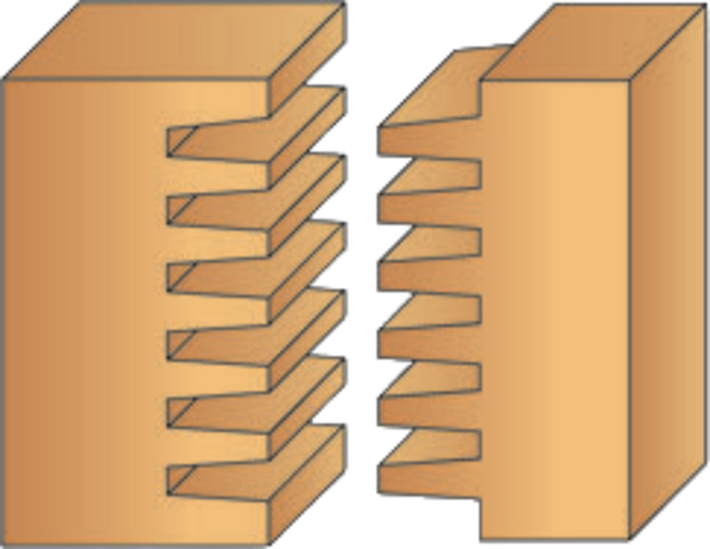 Assemblage à dentures multiples avec large surface de collage dans le bois en suivant un gabarit.