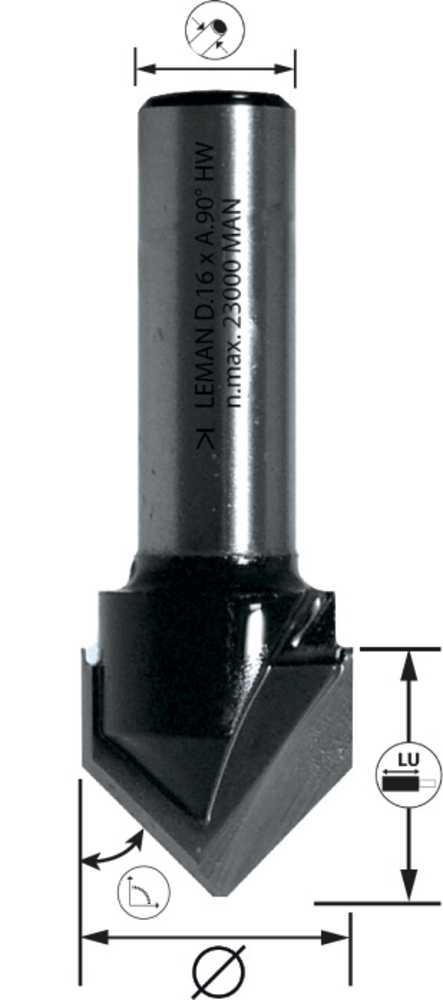 MECHE PROFIL RAINURE EN V HM D.10 / 90° QUEUE 6