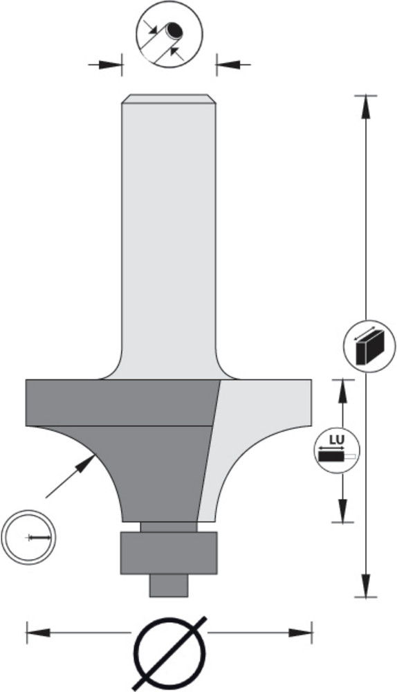 FRAISE 1/4 DE ROND D38,1 LU19 R12,7 Q12/RLT Q12/Rlt