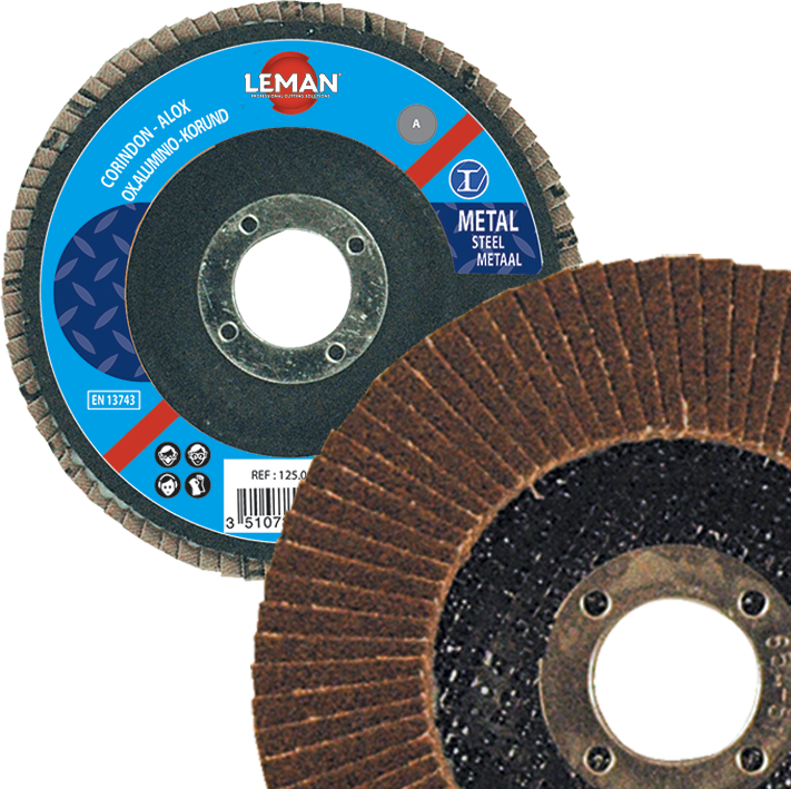 DISQUE A LAMELLES BOMBE 125 GRAIN 80 CORINDON Abrasif : corindon, résine. Support : fibre de verre.