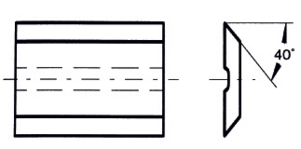 PLAQUETTE K05 19,7X8X1,5 / 2 COUPES 40° HM- rainure grande face
