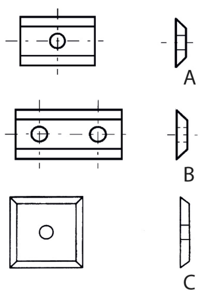 PLAQUETTE K050 MICRO-GRAIN 50X12X1,5/2 COUPES 45° HM