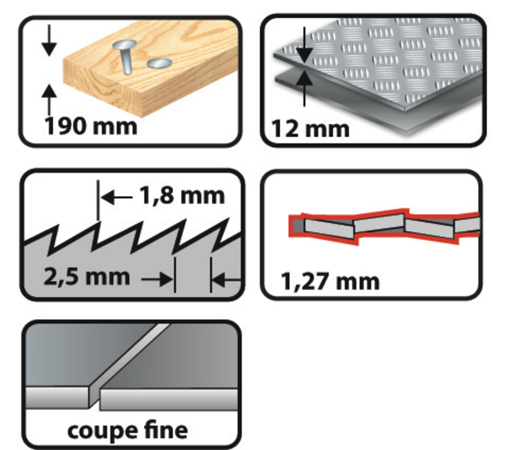 3 LS SABRE 205MM E.1,27 PAS VARIABLE 1,8-2,5MM BIM ACIER/BOIS AVEC CLOUS Lame rigide. Coupe droite.
