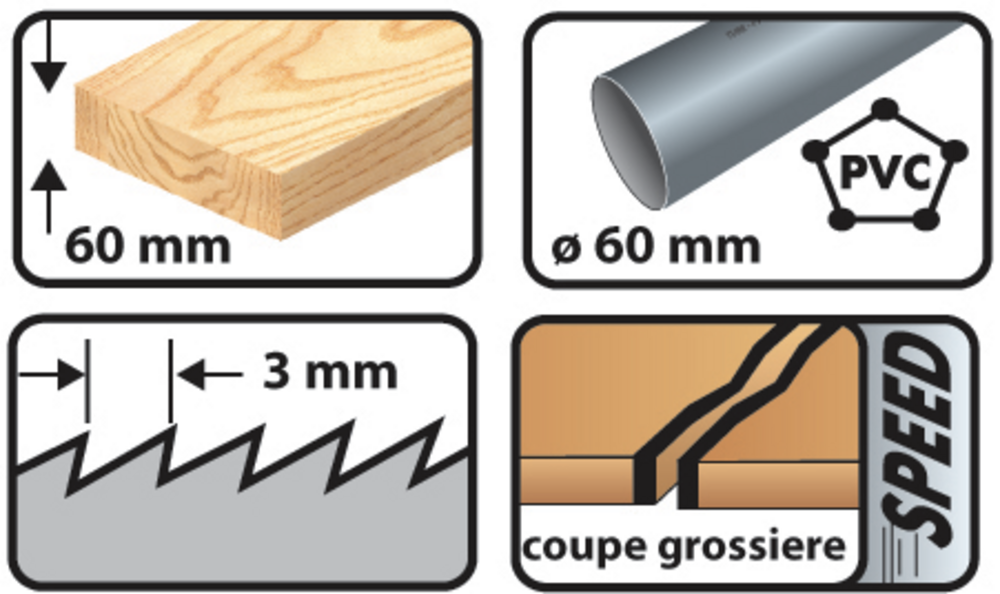 5 LS SAUTEUSE 75MM PAS 3MM CV BOIS/PANNEAUX/PVC Coupe grossière