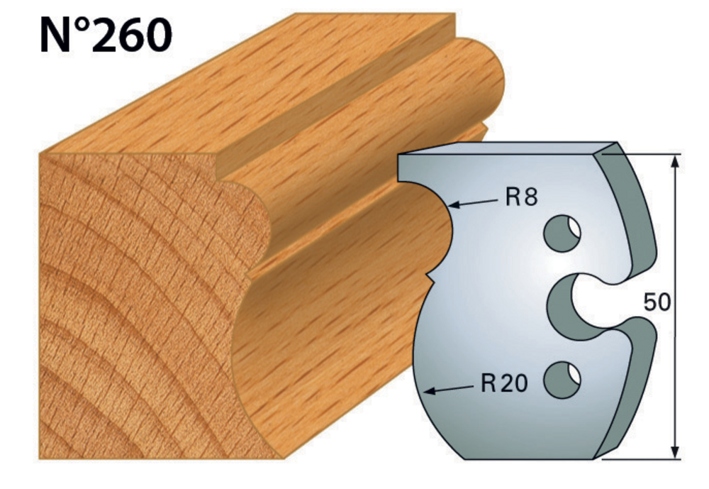 Jeu de 2 fers profils en acier HT de 50 mm.