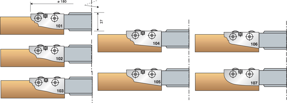 2 PLAQUETTES HM PROFIL 103 POUR PO 948.180.30.101 Permet d’adapter 7 profils différents. Travail par-dessus. Positionnement automatique des plaquettes. Pente de 4°. Livré avec le profil n°101.