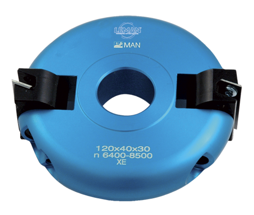 PO INCLIN. PAR 7,5° JUSQU A 45° D120 AL30 EP40 Z2 2 coupes multi-pentes à plaquettes réversibles. Inclinaison des têtes réglables par palier de 7,5°. Rechange : plaquette (40 x 12 x 1,5) 0040.1215.00.