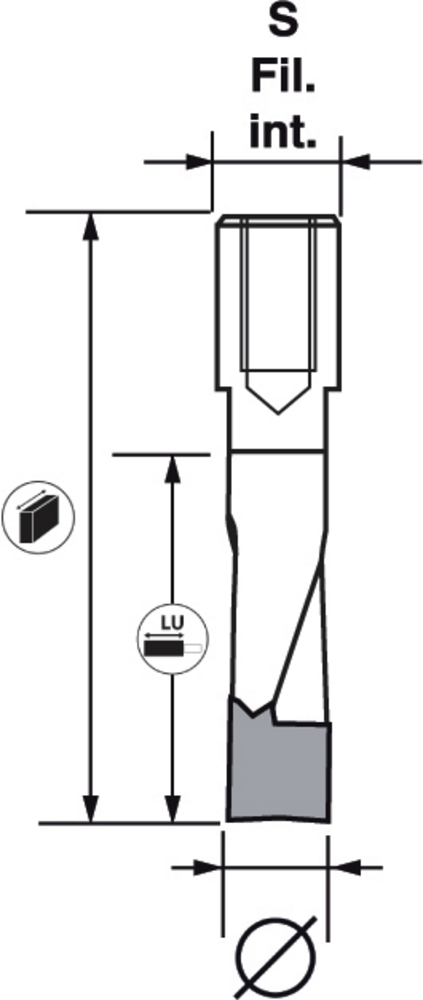 MECHE ASSEMBLAGE DOMINO D6/FIL.M6X0,75 LT49 DROITE HM 2 coupes hélicoïdales au carbure. Queue cylindrique avec filetage intérieur de M6 x 0,75. Fraisage et perçage.