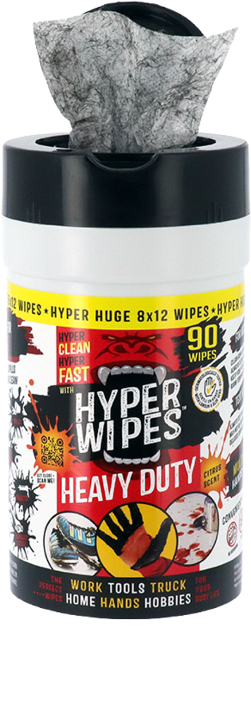 Les lingettes Hyper Heavy Duty, avec sa texture double face, éliminent efficacement la graisse, l’huile, la peinture, l’encre, le marqueur, les éraflures, le cirage et bien plus encore.