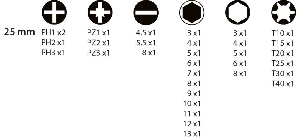 Comprend 20 embouts 25 mm