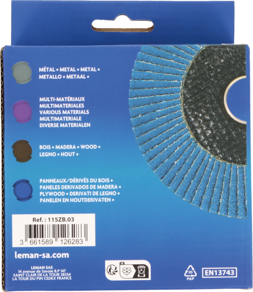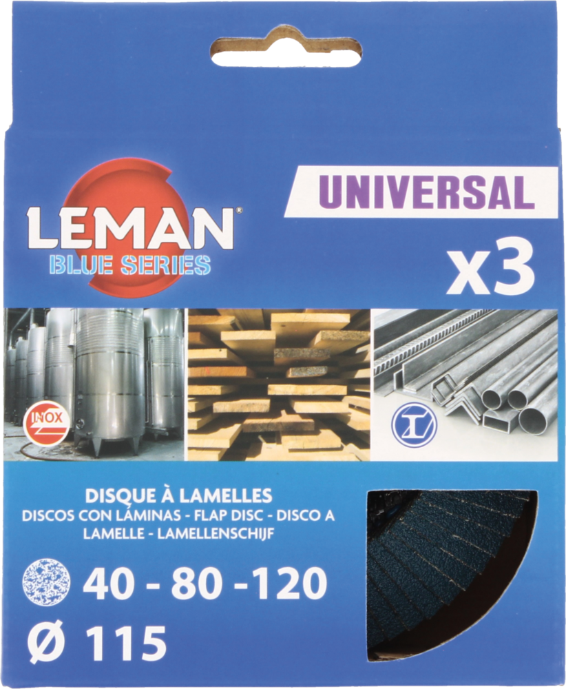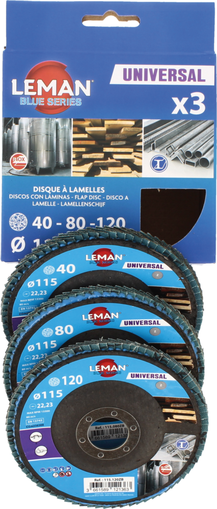 3 DISQUES A LAMELLES BOMBE D115 GR40-80-120 ZIRCO – 115ZB.03 – LEMAN