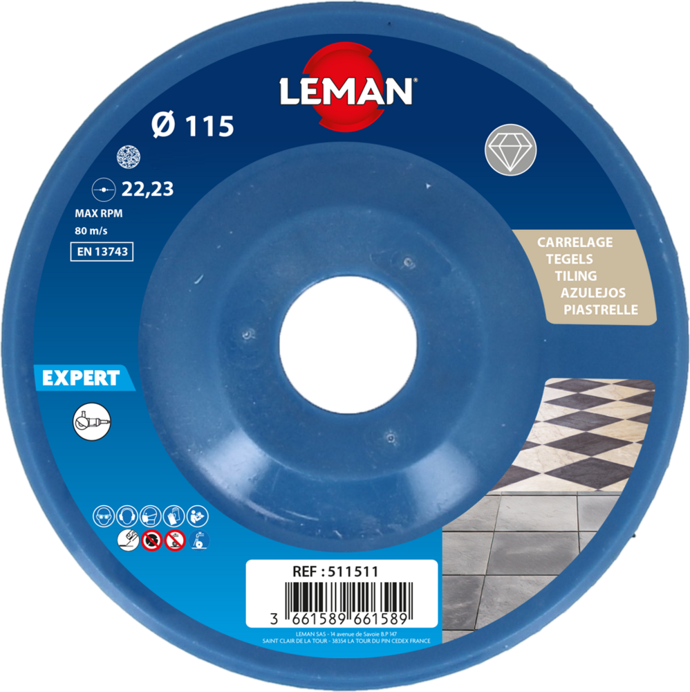DISQUE LAMELLES FLEX. DIAMANTEES D115X22,23 GR120 ELECTROLYSE, SUPPORT PLASTIQUE – 5111512 – LEMAN