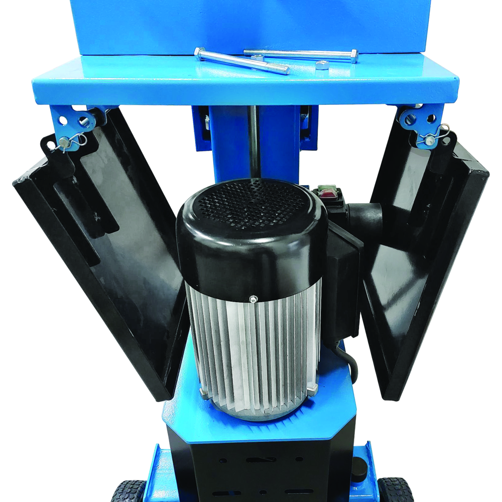 Deux plateaux de stockage: un pour l’alimentation des bûches, un pour les pièces fendues. Plateaux repliables pour le transport ou le remisage.