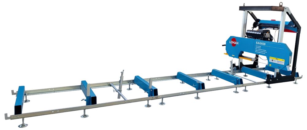 La machine ets livrée avec1 lame en pas de 22mm, un système de lubrification, 6 mètres de rail (3 tronçons de 2m), un système de maintien du tronc, les clés de service et la notice d’utilisation.